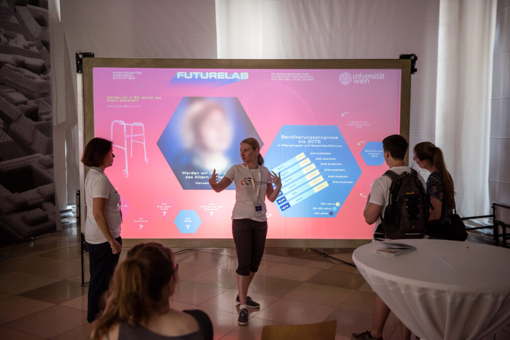 Das Future Lab hatte keinen Anfang und kein Ende, es war ein Eintauchen in eine Welt von Morgen, die voller spannender Fragen ist, auf die es viele oder auch noch keine Antworten gibt. Ziel war es, bei den BesucherInnen Neugier und Interesse zu wecken, die von dieser Inszenierung viele Ideen und Visionen aber auch kritische Reflexionen „mitnehmen“ sollten.